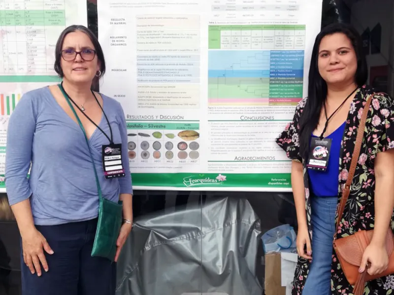 María Alejandra presentó su trabajo en el Congreso Internacional de Orquídeas Andinas, en Medellin, en agosto pasado. En la foto la acompaña la profesora Nicola Flanagan.